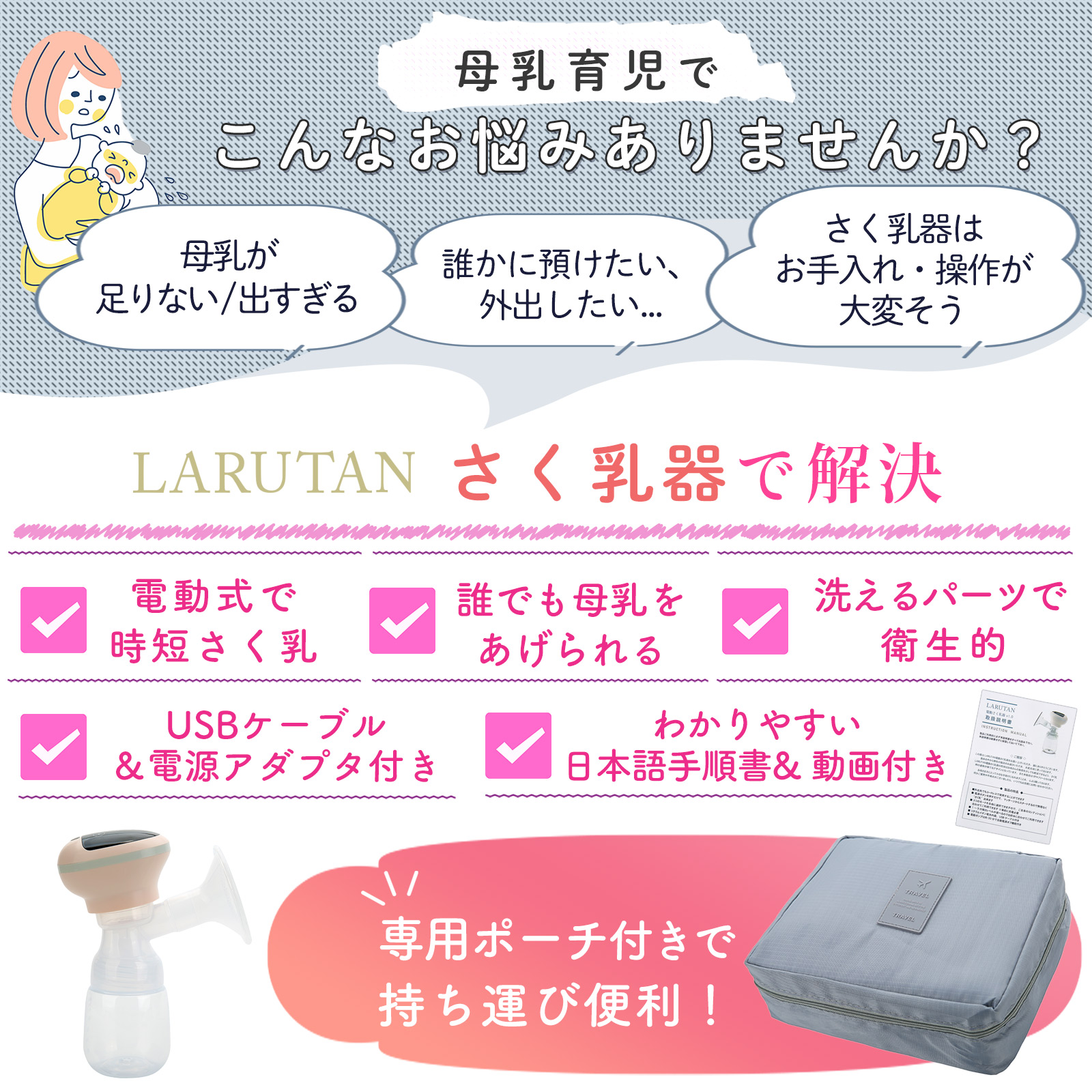 LARUTAN電動バウンサーで、お家の方も、赤ちゃんも笑顔に。かわいいデザインのLARUTAN電動バウンサーはボタン操作で自動で揺れ続け、育児をしっかりサポートします。