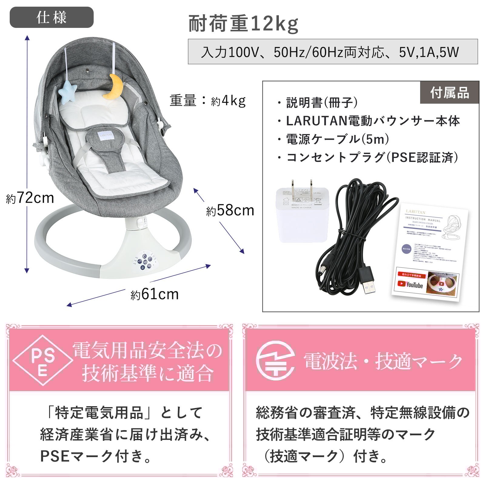 LARUTAN電動バウンサーをお買い求め頂きありがとうございます。